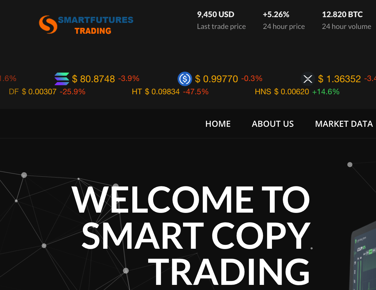 The website claims to offer automatic trading, signal copying, and investment services supposedly backed by professional traders and advanced systems. Its homepage includes fabricated statistics about trading volume, user counts, and profit potential — typical promotional language used to entice newcomers into depositing funds.